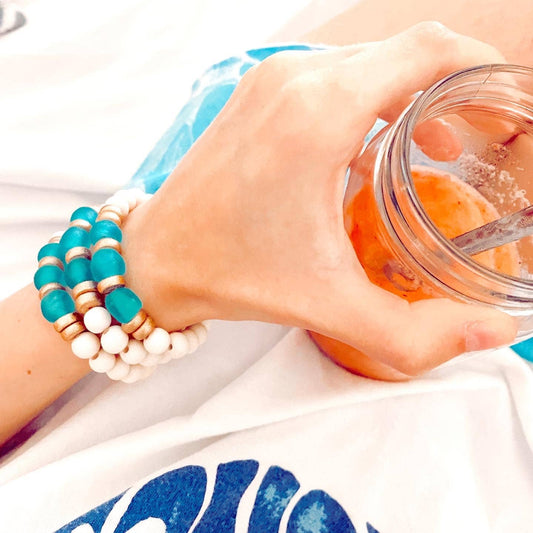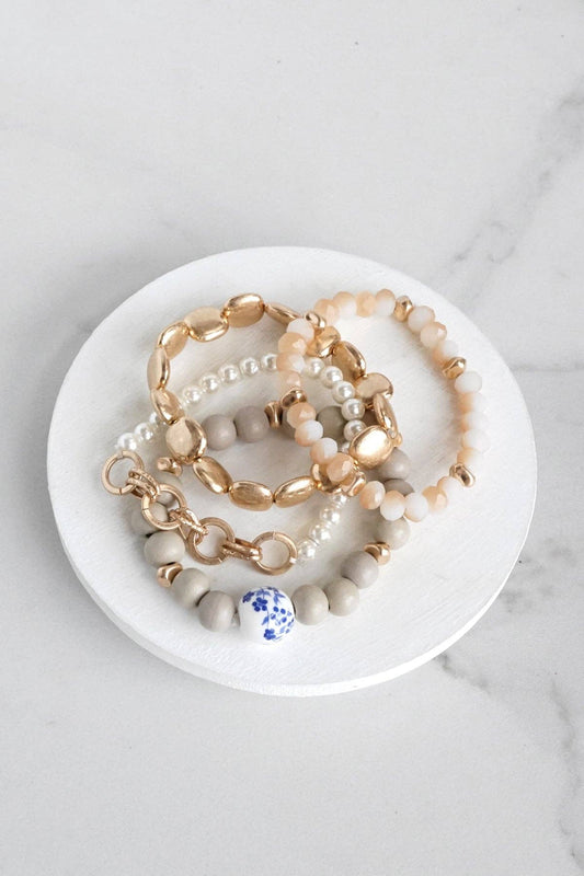 Blue Chinoiserie Wooden Glass Beads Braceleta