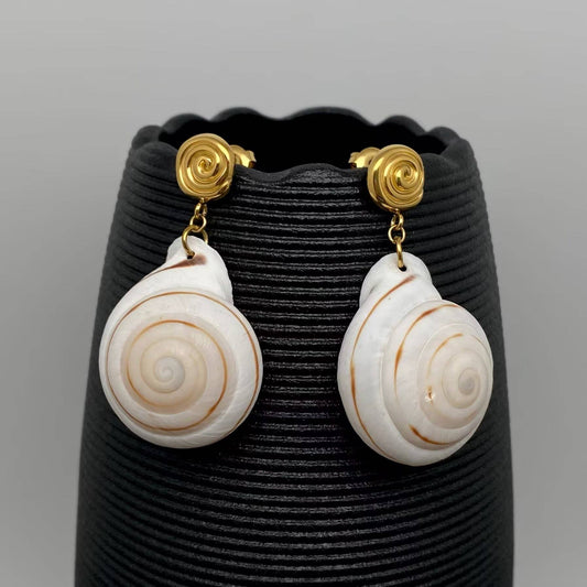 Conch Charm 18K Gold Plated Stainless Steel Post Earrings