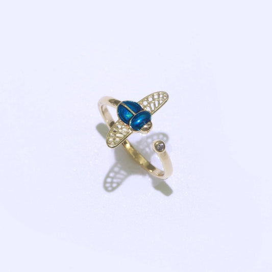 Dainty Bee Ring 18K Gold Filled Ring Open Adjustable Ring Animal Insect Cz Simple Stacking Jewelry