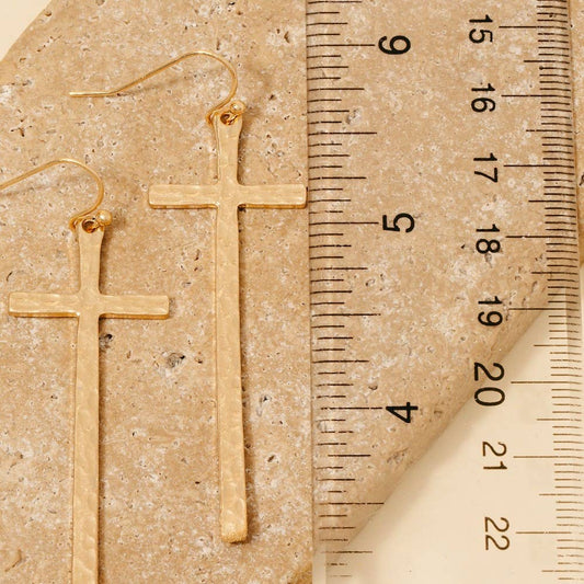 Hammered Long Cross Dangle Earrings