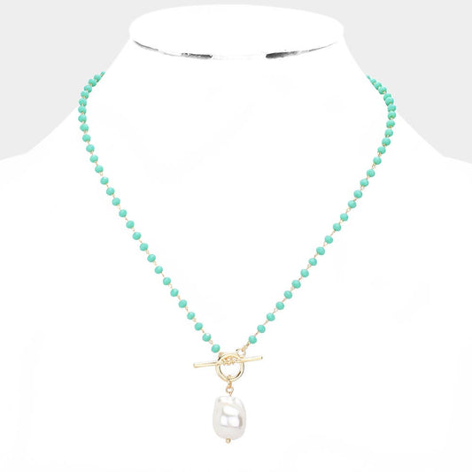 Pearl Pendant Faceted Beaded Toggle Necklace