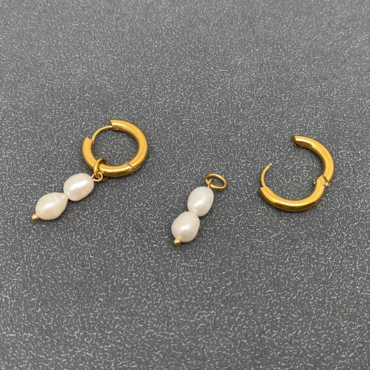 Pearl Charm pendant 18K Stainless Steel Huggie Earrings