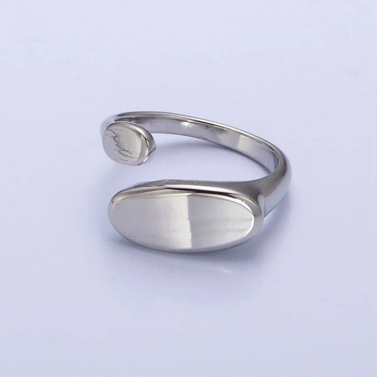 Stainless Steel Flat Oval Double Chubby Claw Open Band Ring in Gold & Silver