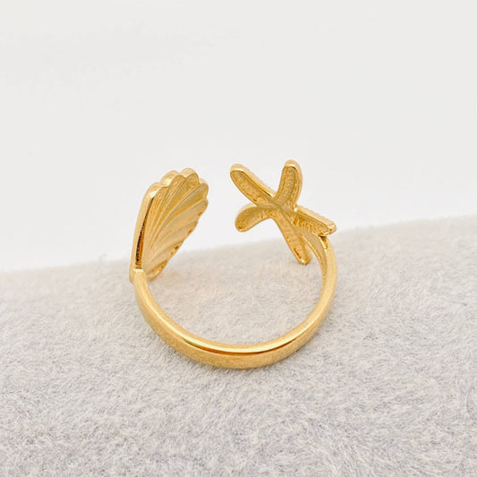 Starfish & Shell 18K Gold Plated Stainless Steel Ring