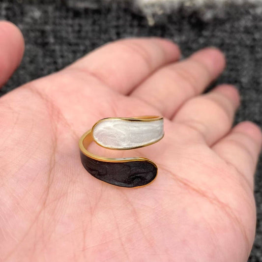 Two Tone Enamel 18K Gold Plated Stainless Steel Adjustable Ring