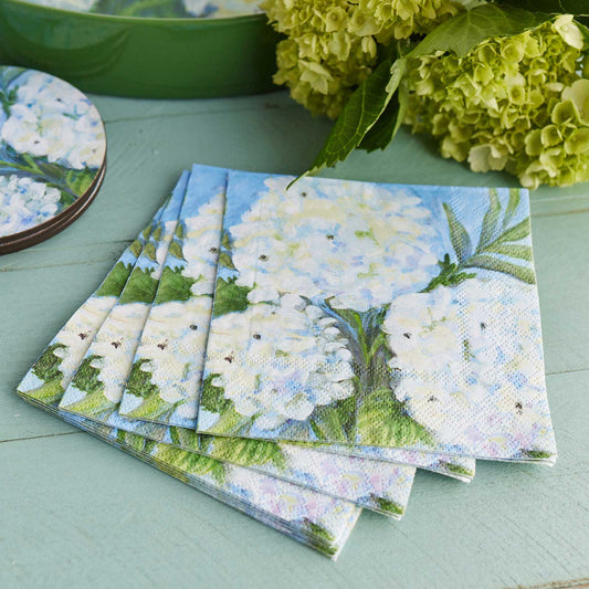 WHITE HYDRANGEAS Paper Napkins, Pack of 20