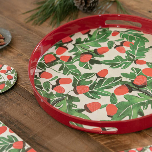 HOLIDAY ACORNS 15 Inch Round Tray