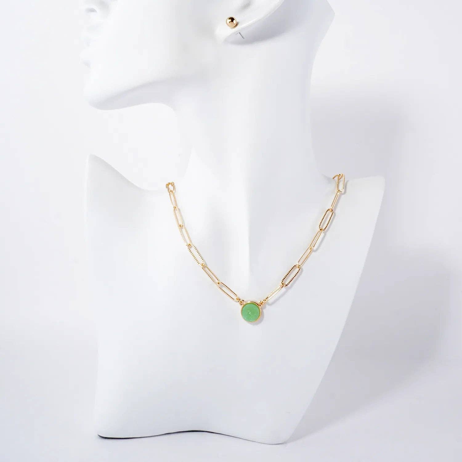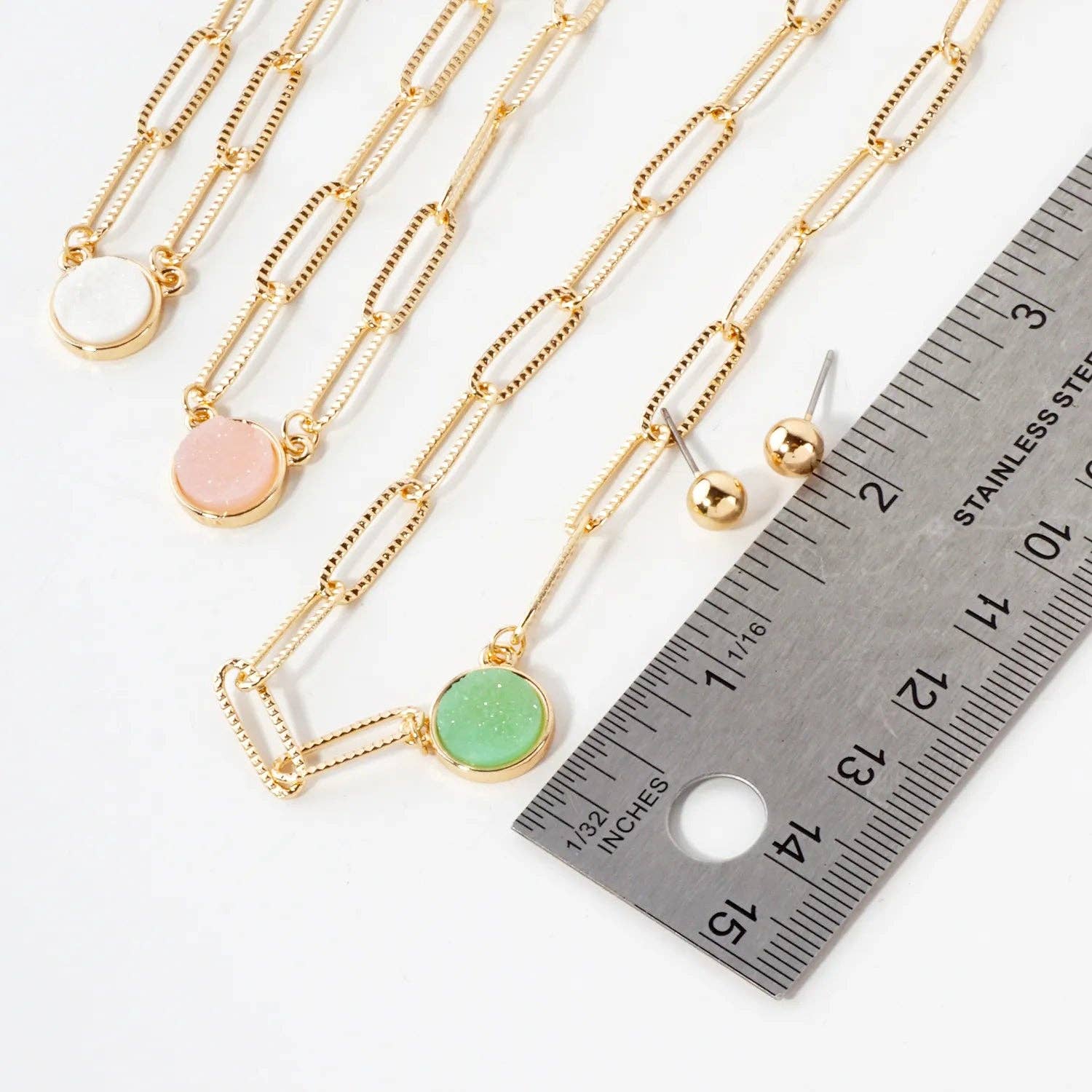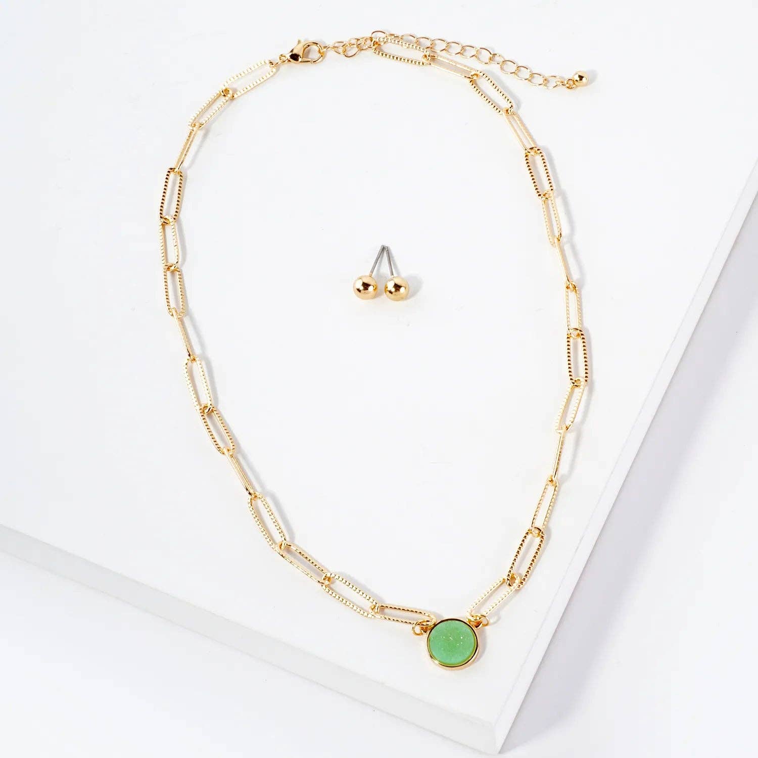 10mm Round Simulated-Druzy Pendant 16-Inch Necklace Set-with-Earrings