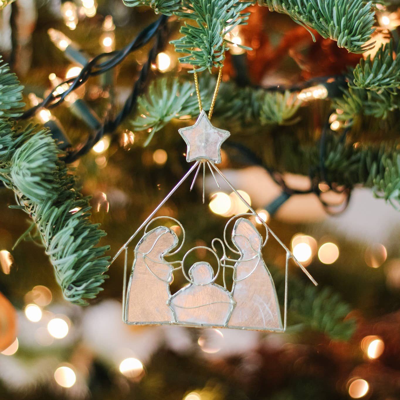 4" Capiz Flat Nativity House Ornament w/Star (Nat/Gold)