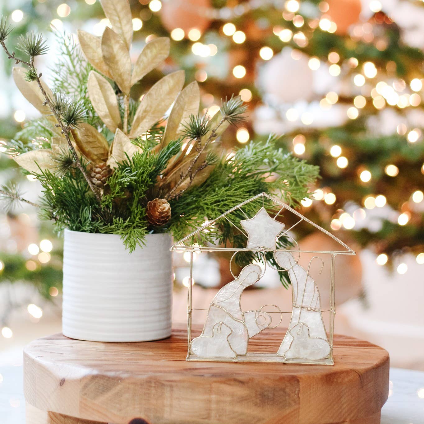 7"x6" Capiz Nativity Scene House (Natural/Gold)