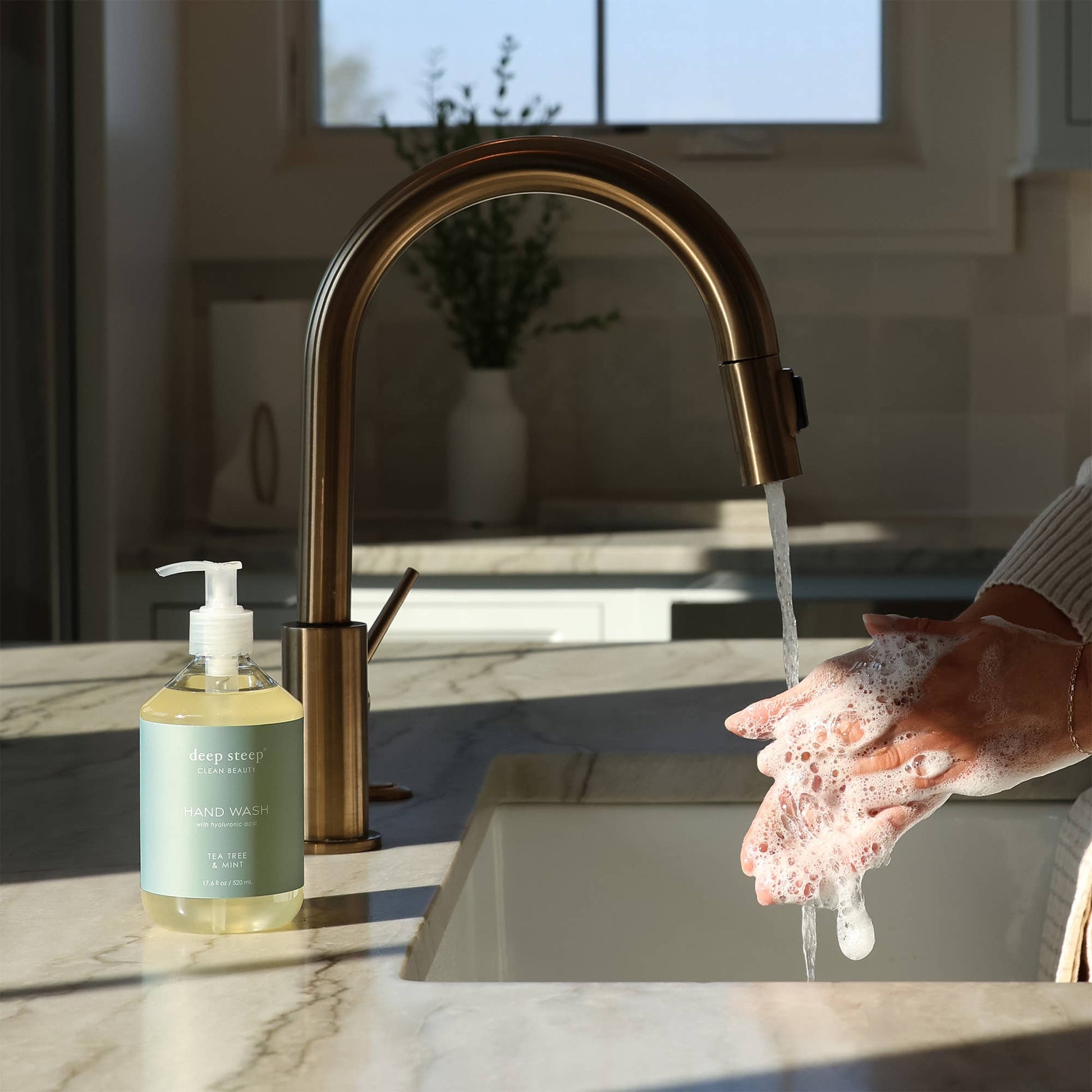 Tea Tree & Mint - Cooling, invigorating Australian Tea Tree Oil and Sweet Peppermint refreshes and soothes. The ultimate clean scent. A 100% aromatherapy essential oil blend. Deep Steep’s rich lathering Argan hand wash provides gentle cleansing while moisturizing with oils of Argan, and Olive.