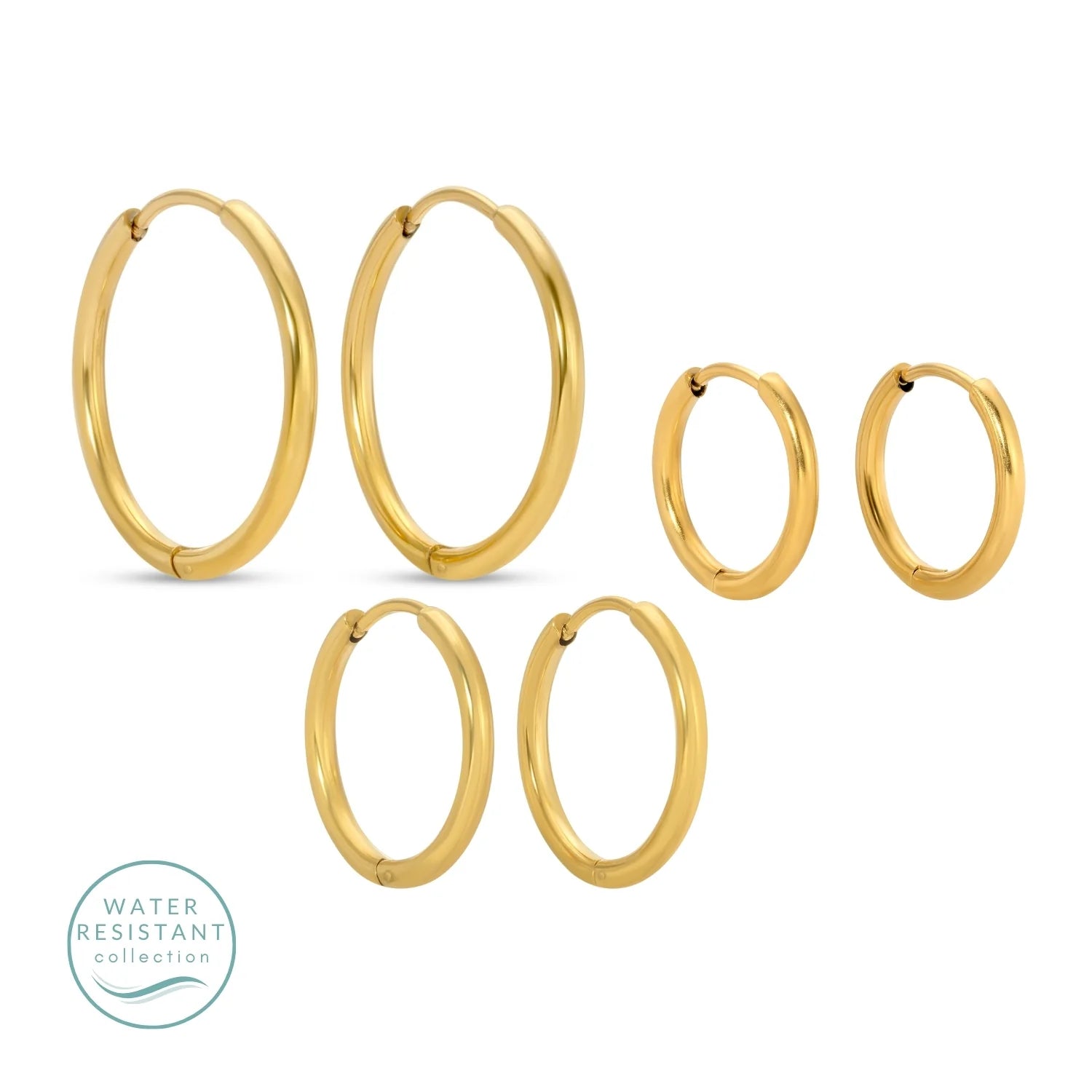 Invest in lasting style with our Basic Huggies, designed to be your perfect everyday earrings and come in three perfectly curated sizes. These versatile and chic huggie earrings feature robust 18k gold PVD plating over stainless steel, making them completely water-resistant.