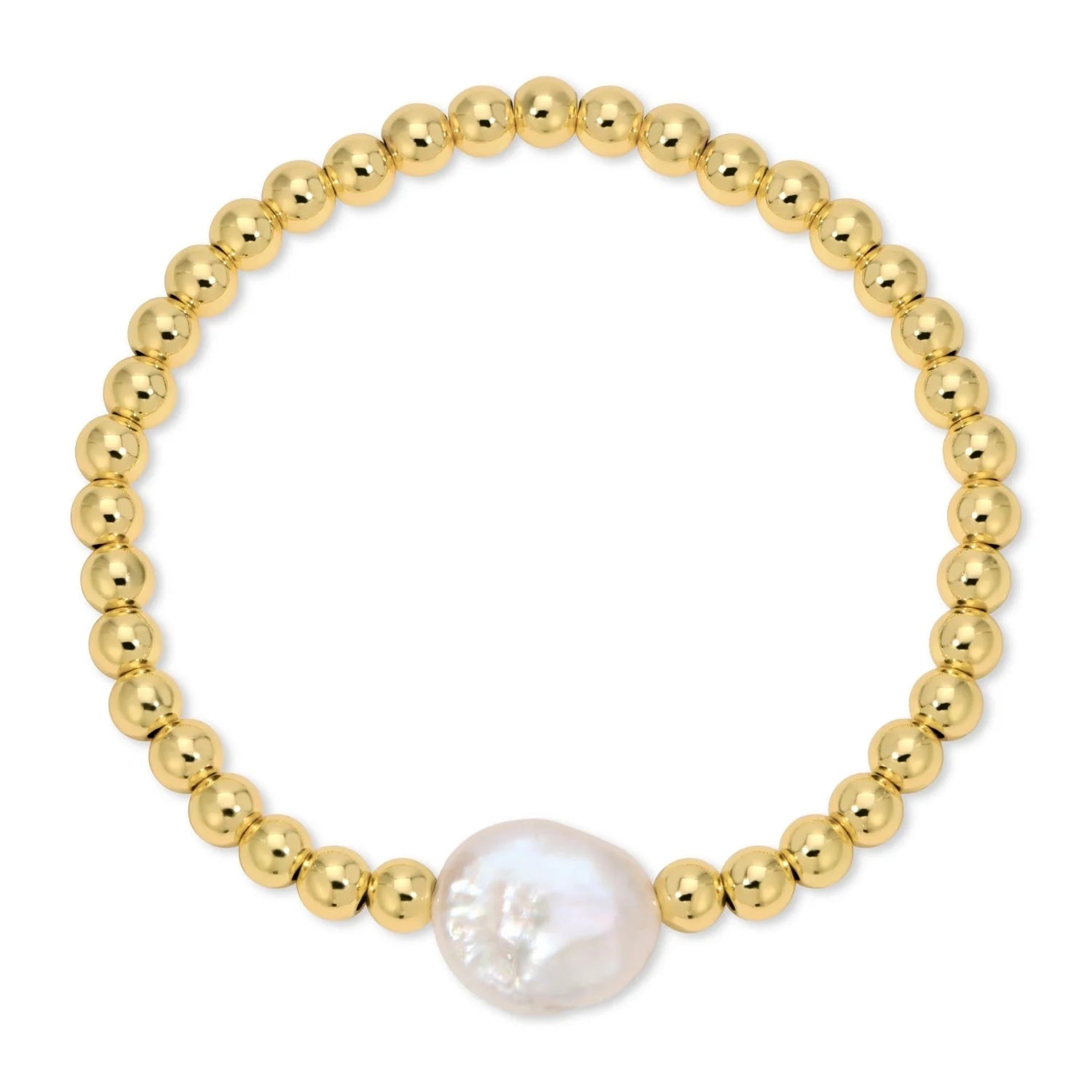 Add effortless elegance to your daily look with our 18K gold-plated Beaded Bracelet with a real Baroque Pearl. Each bead shines with a warm, golden glow, while the one-of-a-kind pearl adds an organic charm that’s both delicate and distinctive. The bracelet’s refined design embraces a feminine aesthetic—soft, graceful, and timeless. Perfect for layering or wearing on its own, it transitions seamlessly from morning coffee runs to evening outings.