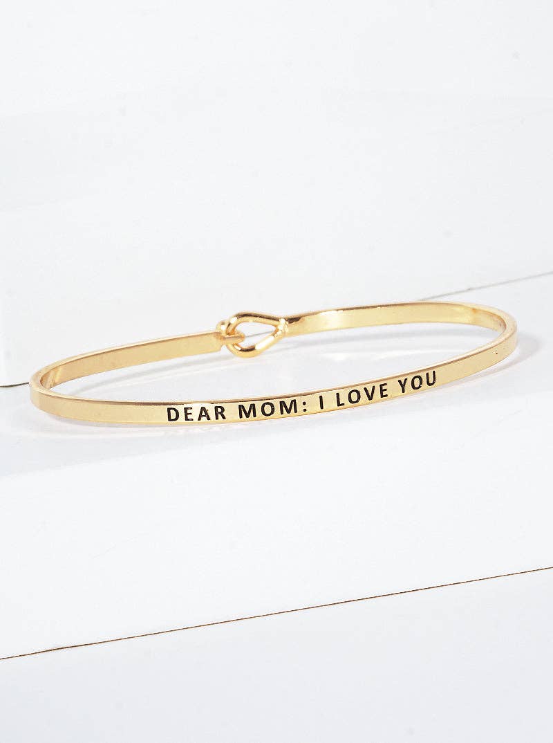 Gift your mom the 'Dear Mom I Love You' Engraved Inspirational Bangle Bracelet from Wild Honey.
