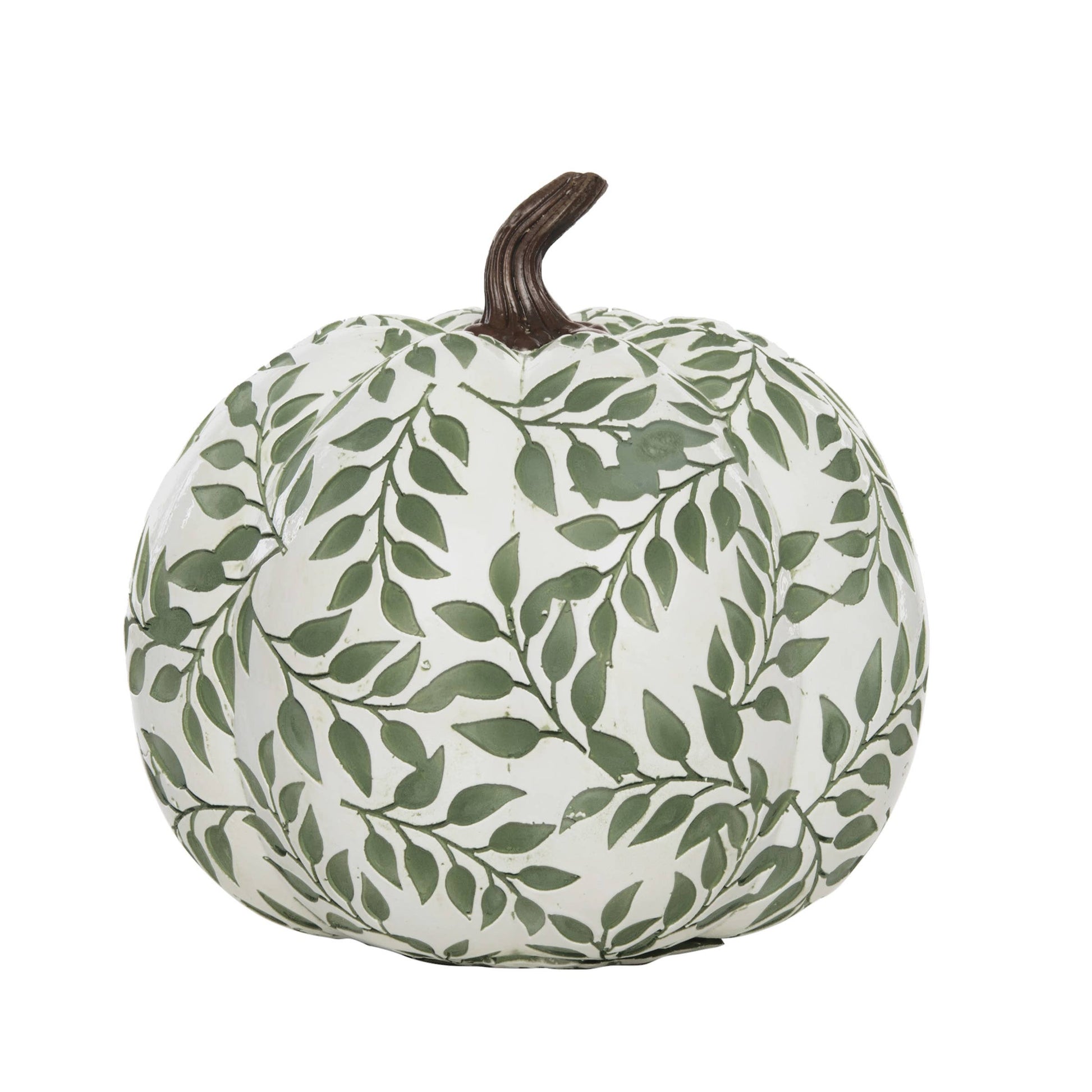 This elegant and sophisticated pumpkin figurine, adorned with botanical details, adds a touch of nature-inspired charm to your autumn display. Crafted of polyresin.