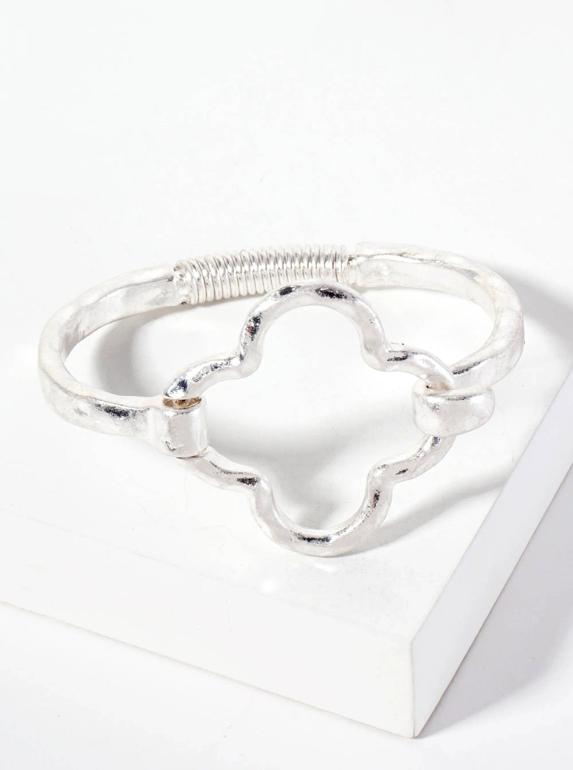 Hammered Metal Clover- Shaped Hook Clasp Hinged Bracelet