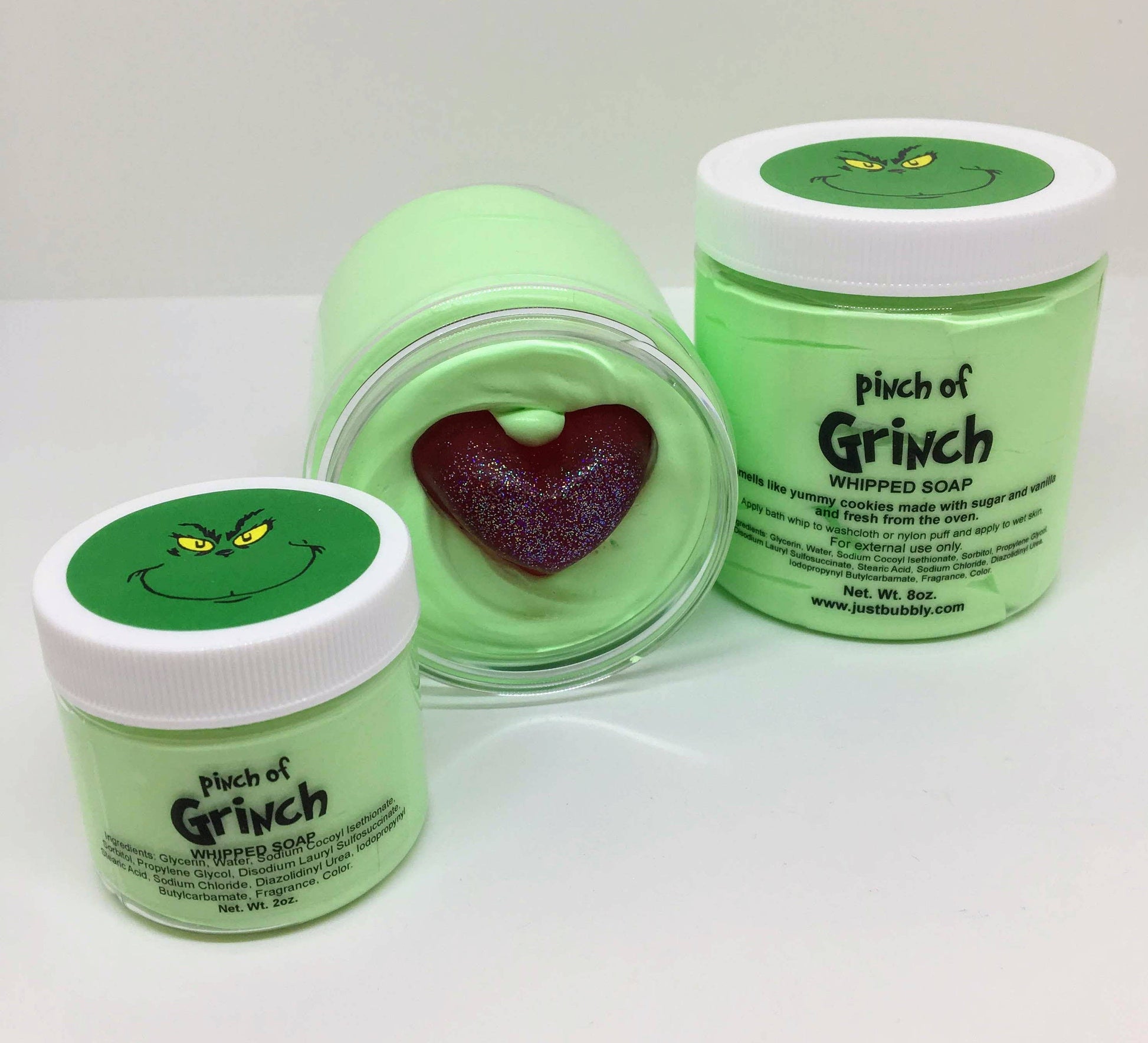 You're a mean one Mr. Grinch! But not with our fabulous sugar cookie scented whipped soap complete with a red heart soap that has grown three sizes on top of our large jar! A creamy, foaming cleanser - great for all skin types.
