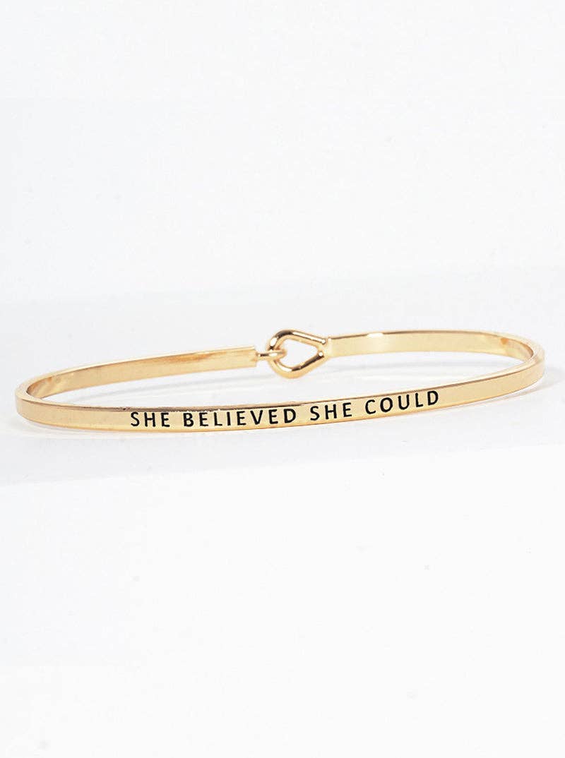 Adorn your wrist with Wild Honey's She Believed Engraved Inspirational Bangle Bracelet.