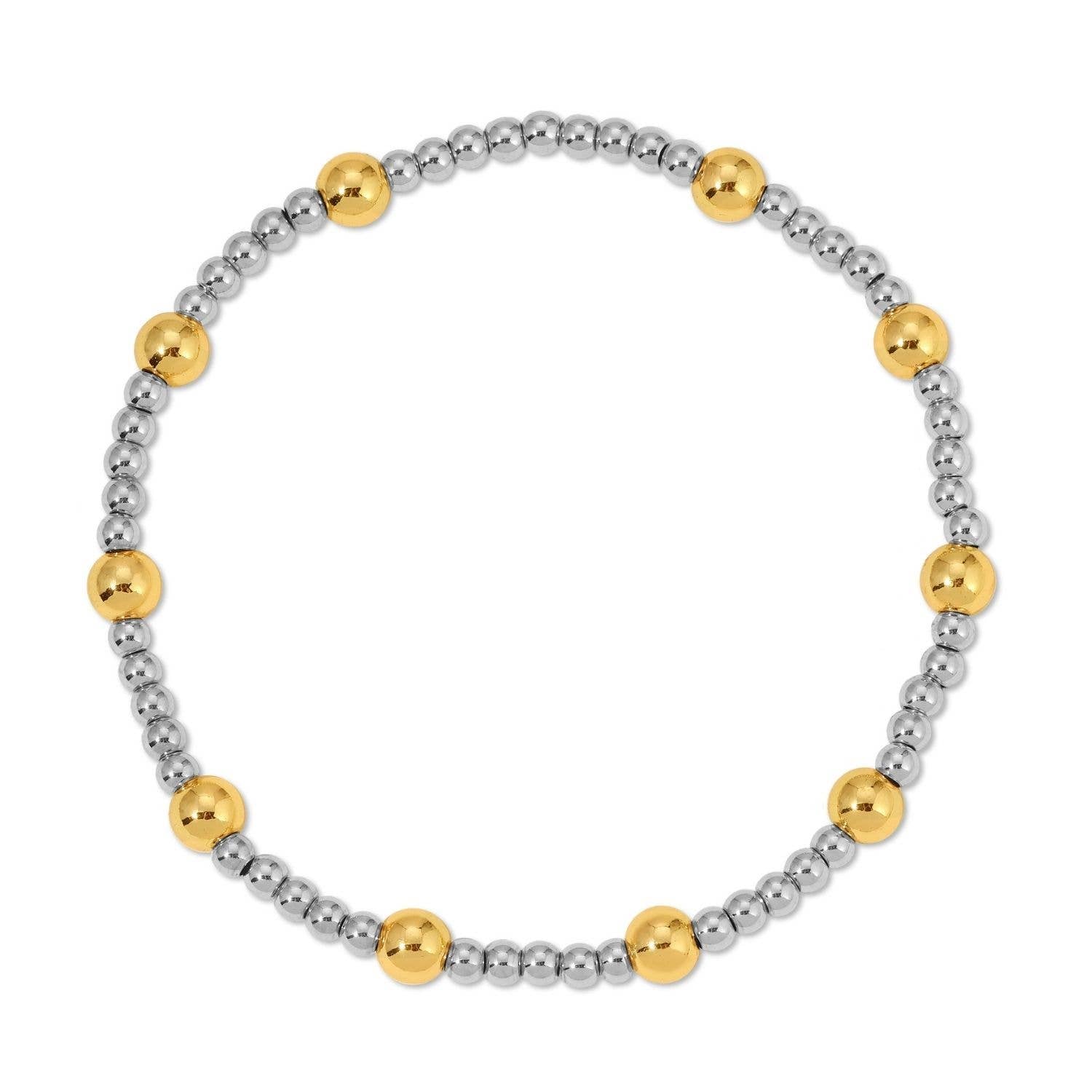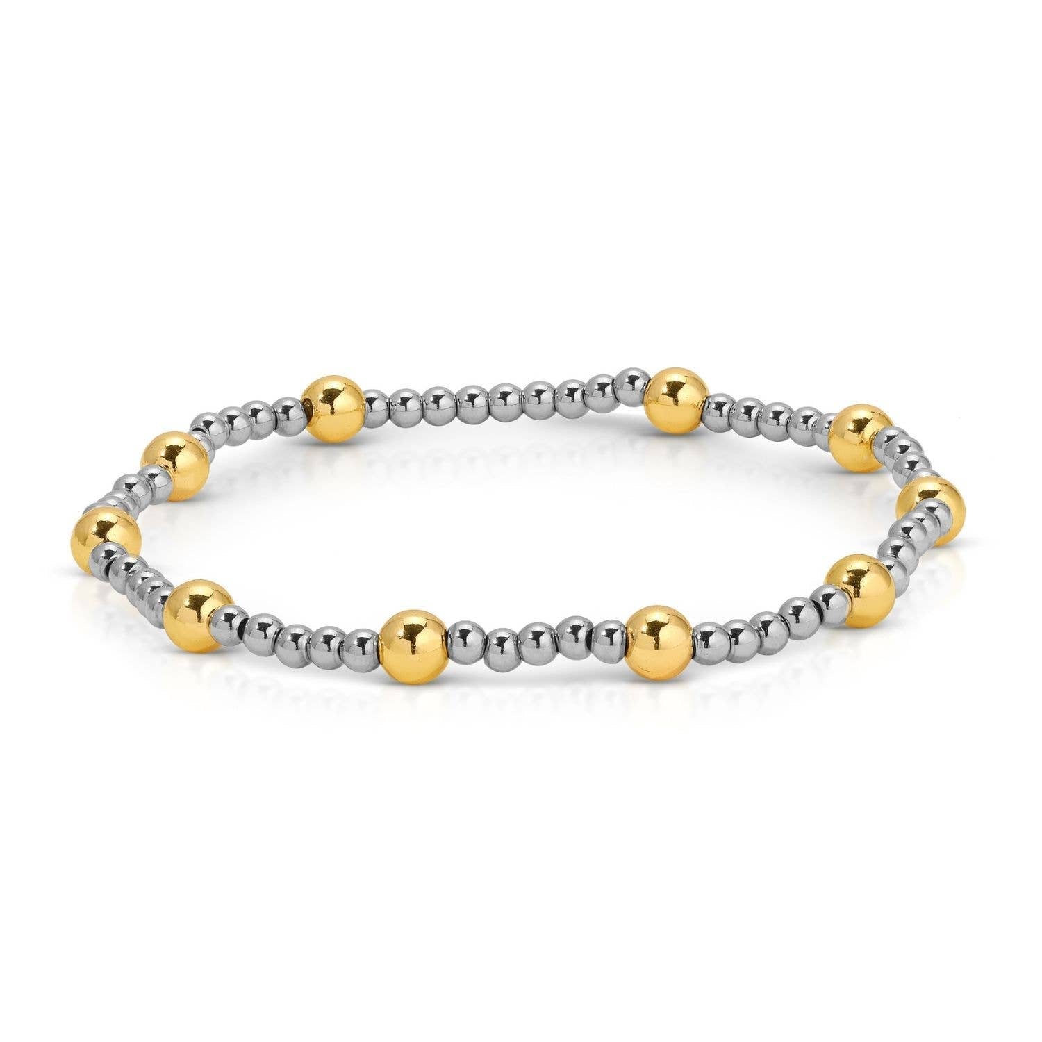 Silver & Gold Bracelet ~ Two-Tone Stretch Bracelet 3mm/5mm