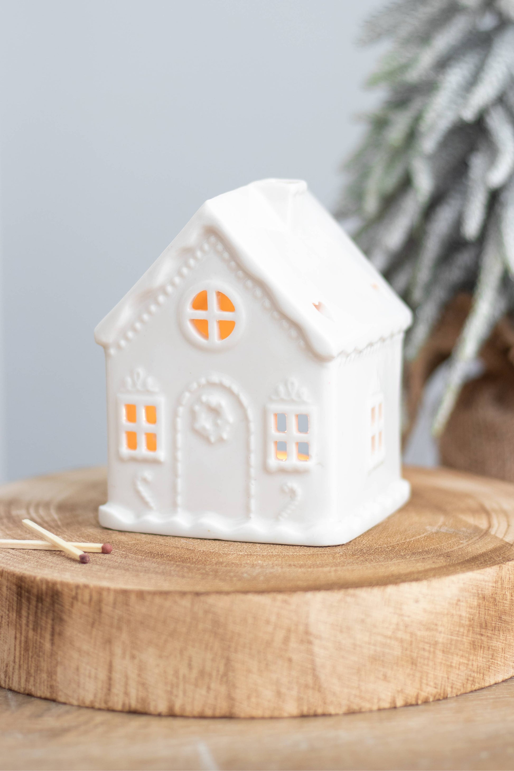 Decorate your home this festive season with this white gingerbread house tealight holder. Place a lit tea light within to create a soft cosy glow - perfect decor accessory for cold winter nights.